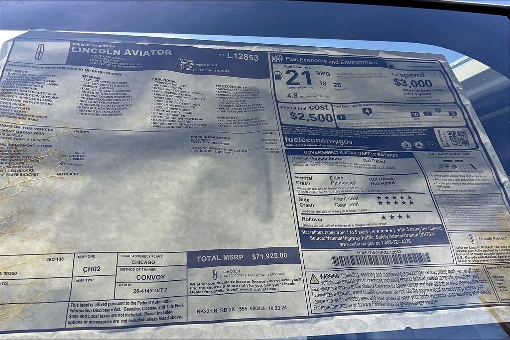- Vehicle Name: Lincoln Aviator