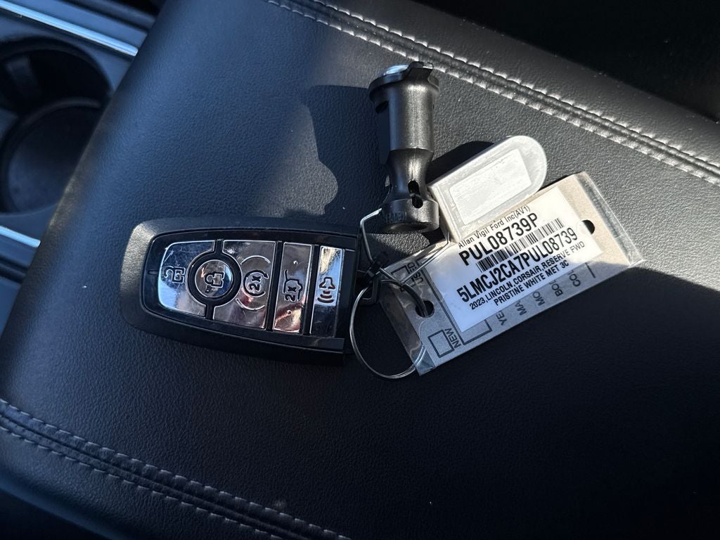 CARFAX One-Owner. Pristine White Metallic Tri-Coat 2023 Lincoln Corsair Reserve FWD 8-Speed Automatic 2.0L Turbocharged 19 Bright Machined Aluminum Wheels, 60/40 EasyFold Rear Seat w/Power Seatback Release, Active Park Assist 2.0, Adaptive Suspension, Auto Air Refresh (Ultra Fresh Cabin), Equipment Group 202A, Frameless Auto Dimming Rearview Mirror, Hands-Free Liftgate, Head-Up Display, Heated Rear Seat, Heated Sideview Mirrors, Heated Steering Wheel, Heated/Ventilated Driver & Front Passenger Seats, Lincoln BlueCruise 1.2, Navigation system: Connected Navigation (3-year trial), Panoramic Vista Roof w/Power Shade, Perfect Position Seats (24-Way) w/Active Motion, Phone As A Key (PAAK), Power Liftgate, Power Tilt/Telescoping Steering Column w/Memory, Power windows, Radio: Revel Audio System w/HD Radio & MP3, Rain Sensing Wipers, Rear Parking Sensors, Remote keyless entry, Universal Garage Door Opener, Windshield Wiper De-Icer, Wireless Charging Pad.
