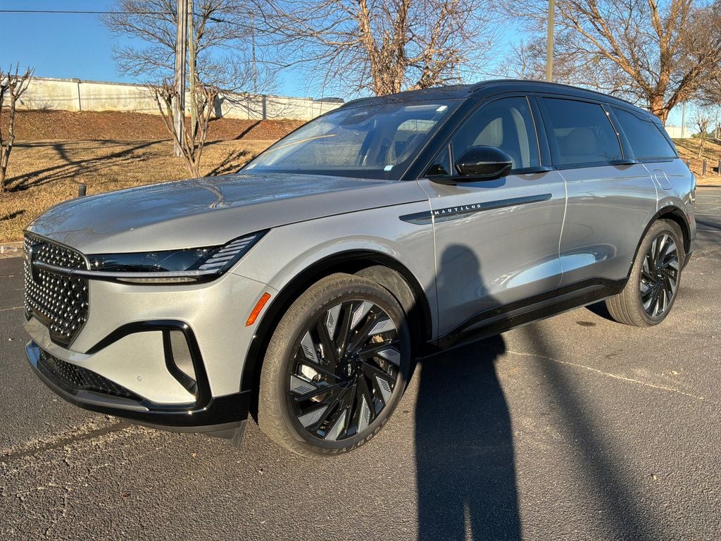 Clean CARFAX. Lustrous Gray Metallic 2025 Lincoln Nautilus Reserve AWD 8-Speed Automatic 2.0L GTDi 110V Power Converter, Auto Air Refresh, Black Exterior Elements, BlueCruise Equipped (4-Years Included), Body Color, Digital Scent, Dual front impact airbags, Dual front side impact airbags, Electronic Stability Control, Equipment Group 202A Reserve II, Exterior Parking Camera Rear, Hands-Free Power Liftgate, Jet Appearance Package, Navigation System, Outside temperature display, Panoramic Vista Roof w/Powershade, Power Liftgate, Power steering, Power windows, Rear Heated Seats w/Switch Control, Remote keyless entry, Wheels: 22 Satin Dark Luster Aluminum.
